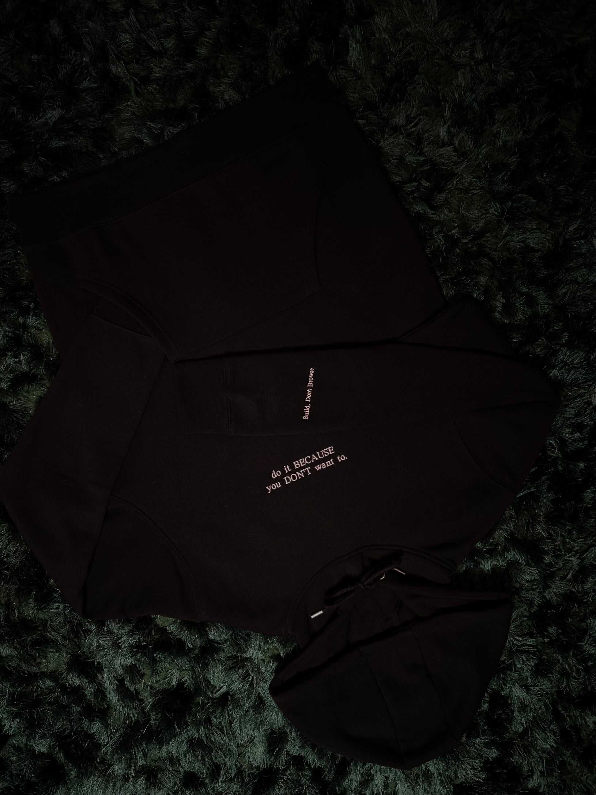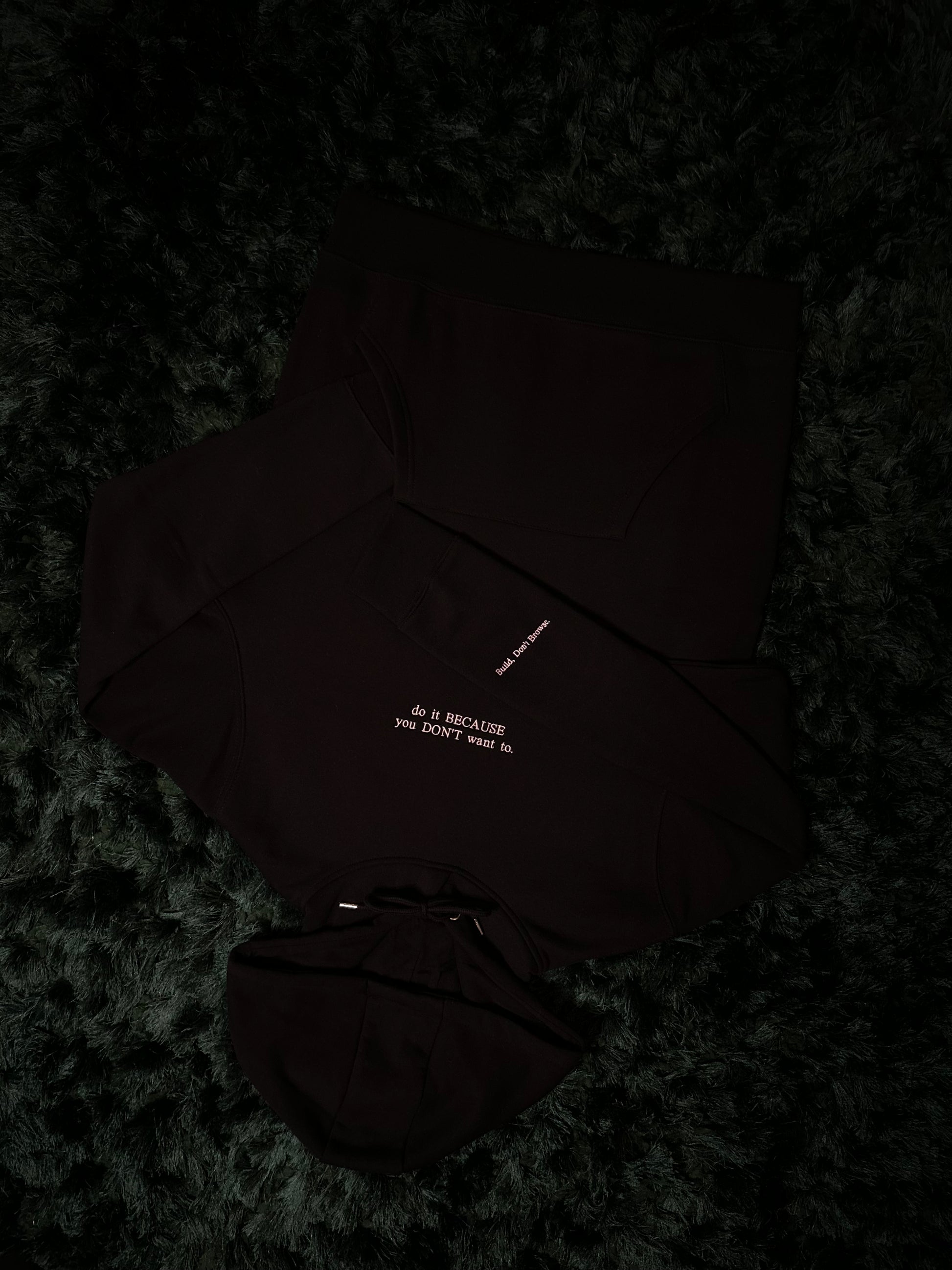 Remind yourself who is responsible with our sleek fitted hoodie. This has been designed with a high quality embroidered quote "Do it BECAUSE you DON'T want to"